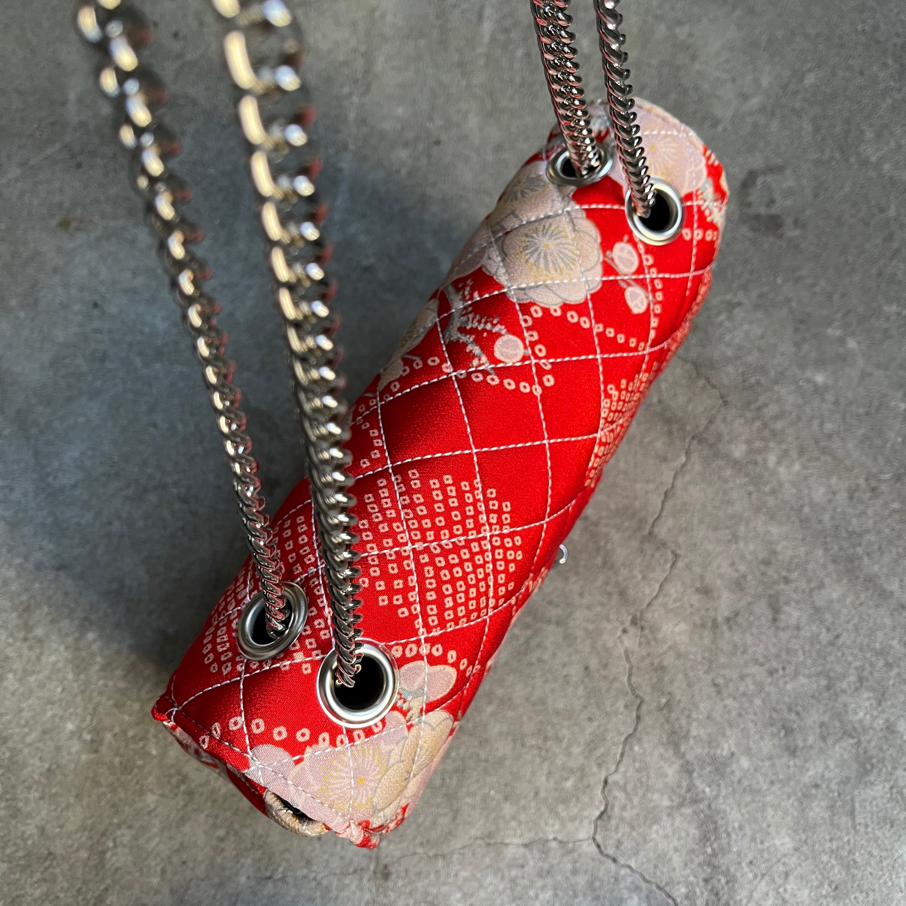 Composition : Vintage Kimono / FRONT Grosgrain / Back Silver plated / Chain